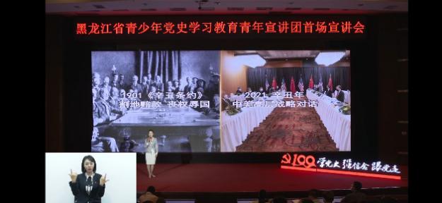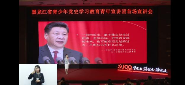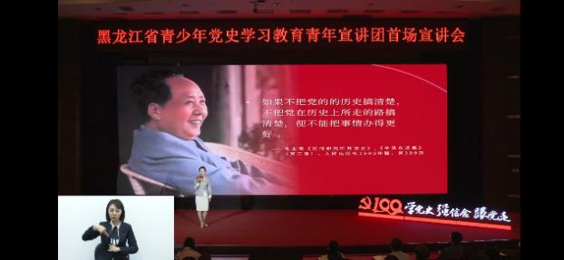 宣讲会上,青年宣讲团成员梅瑞琪(哈尔滨师范大学辅导员)讲述了中国共产党百年历史发展的主题主线,描绘了中国共产党由弱到强,不断从胜利走向胜利的《光辉的历程》。青年宣讲团成员韩瑞(东北烈士纪念馆讲解员)讲述了白山黑水间东北抗联战士杨靖宇、赵尚志、赵一曼等革命英雄人物前赴后继、英勇斗争,可歌可泣的《血与火的青春》。青年宣讲团成员王立志(铁人王进喜纪念馆首席讲解员)展现了在中国共产党的带领下,大庆油田几代石油人与祖国同呼吸、共命运,《青春为祖国加油》的艰苦创业的感人故事。精彩的宣讲感人至深,激人奋进、传递了深厚的爱国情怀和蓬勃的青春力量,引发了共青团员们的深深的思考和强烈的共鸣。
