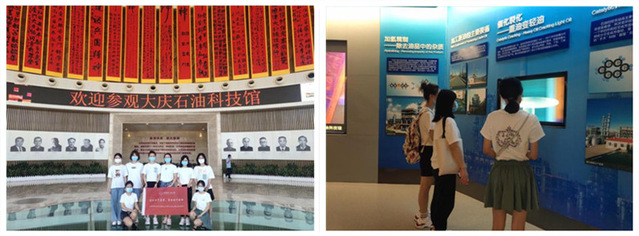 实践团来到大庆市石油科技馆,参观学习大庆油田发现50年来的科技创新发展历程,从现代的勘探技术和取油工艺了解学习我国现阶段的石油现状与前景。