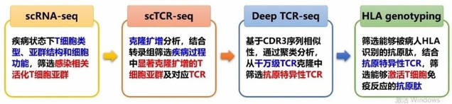 分享会中,王平平从新冠病毒感染后机体的适应性免疫响应过程入手讲解,详细介绍了如何利用单细胞RNA测序(scRNA-seq),单细胞免疫组测序(scTCR-seq和scBCR-seq),深度免疫组库测序(Deep TCR-seq和BCR-seq)和HLA基因分型检测(HLA genotyping)快速高效筛选新冠肺炎疫苗靶点与中和抗体的思路和方法。