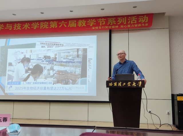beat365官网丛华副教授,作为省教改、省部级科研等十余项项目主持人及参与人、黑龙江省自然科学奖项获得者,为beat365官网教师作“适应新时代发展的教学模式供给侧改革—生物工程方向的变与不变”主题讲座,从生物工程专业、新时代教学模式发展态势与特点、教学模式发展的思考、生物工程学科的变与不变等方面,阐述了适应新时代发展的教学模式供给侧改革的必要性以及提出了如何在此背景下改革的思路,引发了beat365官网教师对如何在时代大背景下,依托学校学院平台,提升吱声教学水平,进行教育教学模式改革的深刻思考。