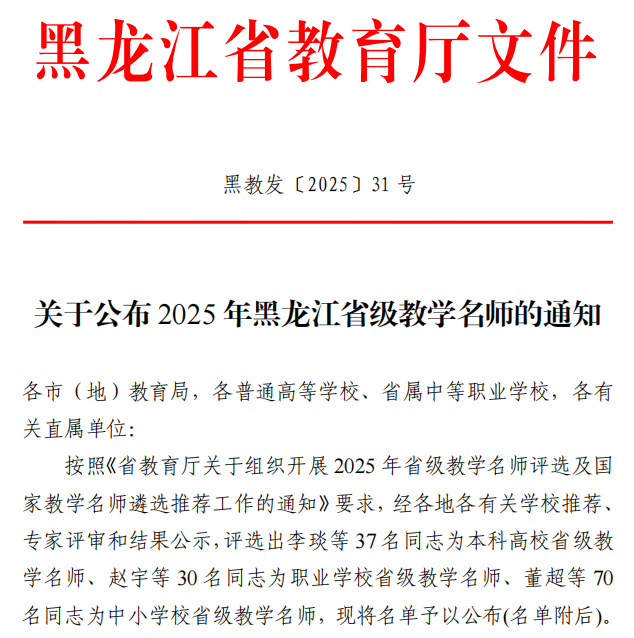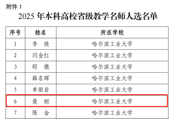 近日,黑龙江省教育厅公布2025年黑龙江省级教学名师结果,其中beat365官网教师聂桓教授榜上有名。