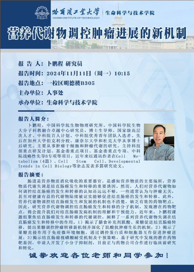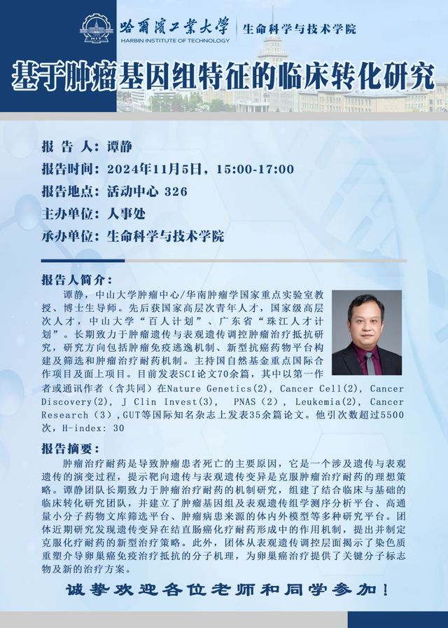 应学校“科学家讲坛”邀请,新加坡国立大学陈小元院士来beat365官网访问,并为beat365官网师生带来精彩学术报告,欢迎全校师生参加。报告人:陈小元教授报告题目:Modulating Immunosuppressive Tumor Environment with Nanomedicine报告时间:2024年7月3日(周三)上午9:00—11:00报告地点:活动中心330主办单位:人事处承办单位:生命科学和医学学部医学与健康学院报告人简介陈小元,欧洲科学院院士,1993年和1996年获南京大学化学学士和硕士学位,1999年获美国爱达荷大学博士学位。经过Syracuse大学和Washington大学圣路易分校博士后训练,2002年进入南加州大学放射学系任助理教授,2004年转入斯坦福大学,2008年升为副教授。2009年陈博士加入美国国立卫生研究院(NIH)生物医学影像及医学工程所(NIBIB)任资深研究员,分子影像及纳米医学实验室主任。现为新加坡国立大学医学院和工程学院终身Nasrat Muzayyin讲席教授。陈教授入选美国医学与生物工程学会会士(AIMBE Fellow,2017)和核医学与分子影像学会会