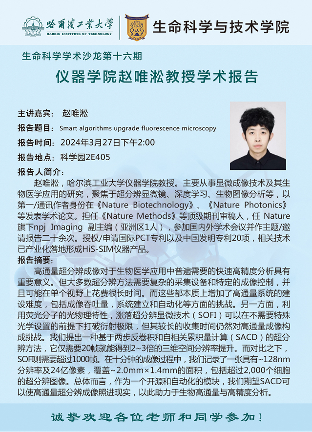 【生命科学学术沙龙第十六期】仪器学院赵唯淞教授学术报告