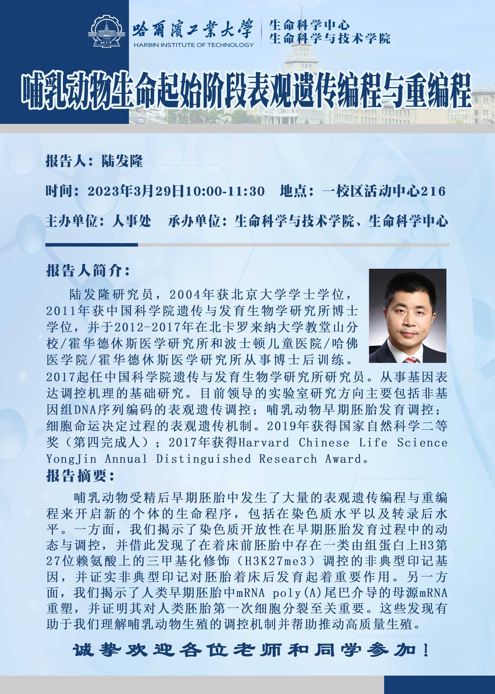 【生命科学学术沙龙】第8期大连理工大学杨光锐教授学术报告