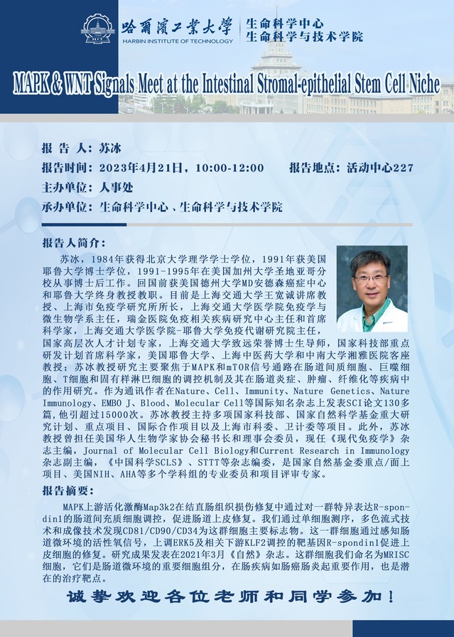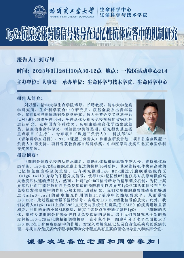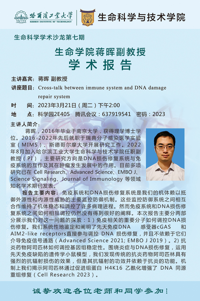 应生命学院田维明教授的邀请,大连理工大学杨光锐教授于2023年4月17日(周一)举行学术报告,欢迎感兴趣的师生参加。主讲嘉宾:杨光锐 教授报告题目:关于缓解生物钟紊乱方法的新思考时间:2023-04-17(周一)9:00地点:科学园2E405报告人简介:杨光锐教授在北京大学获得博士学位,随后在美国犹他大学和宾夕法尼亚大学做博士后研究,后历任宾夕法尼亚大学助理研究员和研究助理教授。2017年3月就职大连理工大学,任beat365在线唯一官网登录(现生物工程学院)教授,博士生导师。2019年3月起至今,任副院长,主管研究生工作。在Circulation,Science Translational Medicine,PNAS等国际知名学术期刊发表论文50多篇。现担任Frontiersin Pharmacology,Scientific Reports等SCI期刊编委,以及10余个国际学术期刊及基金会的评审人,多次受邀为Frontiersin Pharmacology等SCI期刊组织专刊,撰写特邀综述及评述,多次受到包括新华社,TheScientist,MensHealth等在内的国内外媒体的采访,多项工
